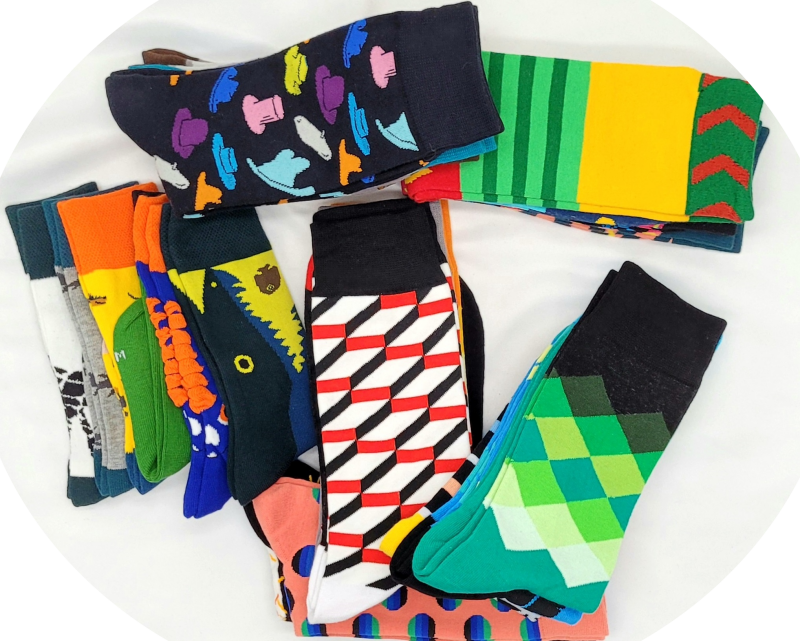 We hebben een vrolijk assortiment sokken voor volwassenen.